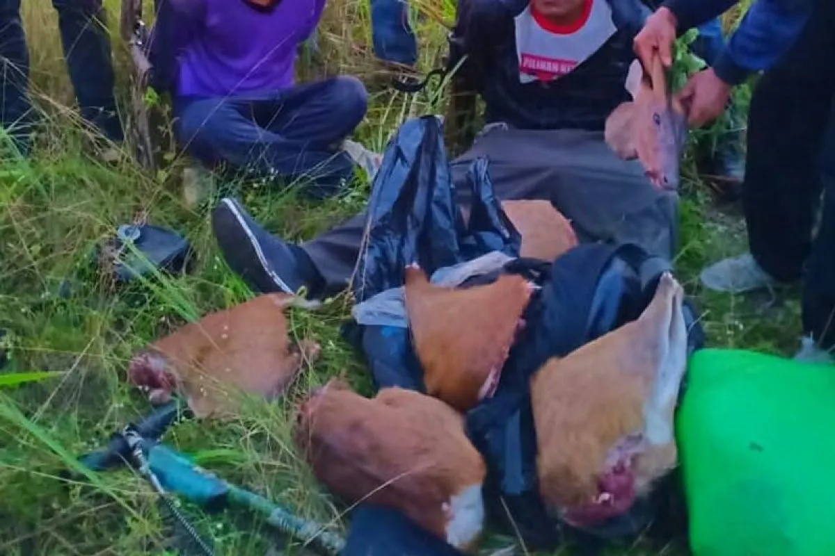 Sukatmoko menyebutkan, dalam penangkapan itu diamankan dua ekor rusa yang sudah dipotong-potong dalam bentuk daging, dua senapan angin gejluk beserta pelurunya serta kompas, golok dan pisau.