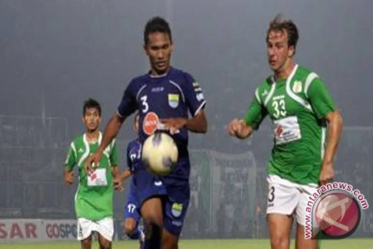 esepakbola PSMS Medan Nastja Cech (kanan) berebut bola dengan pesepakbola Persib Bandung Zulkifli Syukur (kiri) pada pertandingan Indonesia Super Liga (ISL) 2011-2012 di Stadion Teladan Medan, Sumut, Minggu malam (17/6). PSMS Medan berhasil mengalahk