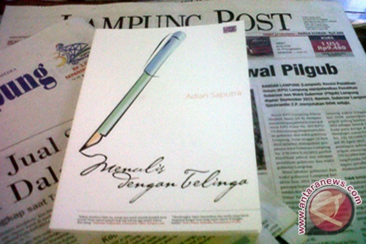 (Judul Buku: Menulis dengan Telinga; Penulis: Adian Saputra; Penerbit: Indepth Publishing; Editor: Ridwan Hardiansyah; Desain Sampul, Ilustrasi, Tata letak: Tri Purna Jaya; Cetakan Pertama Juni 2012, 13,5 x 20,5 cm, 138 hlm+ xvi/ilustrasi/gambar).