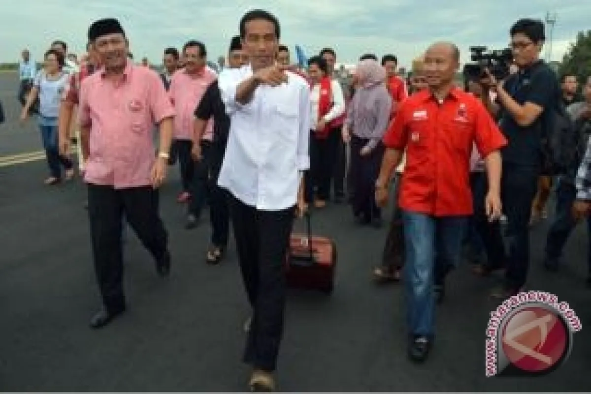Sejak datang dan mendarat di Bandara Raden Inten II Branti Lampung Selatan, Jokowi lebih memilih berjalan kaki daripada menaiki Bus Damri yang disiapkan, Jumat (21/3) petang.