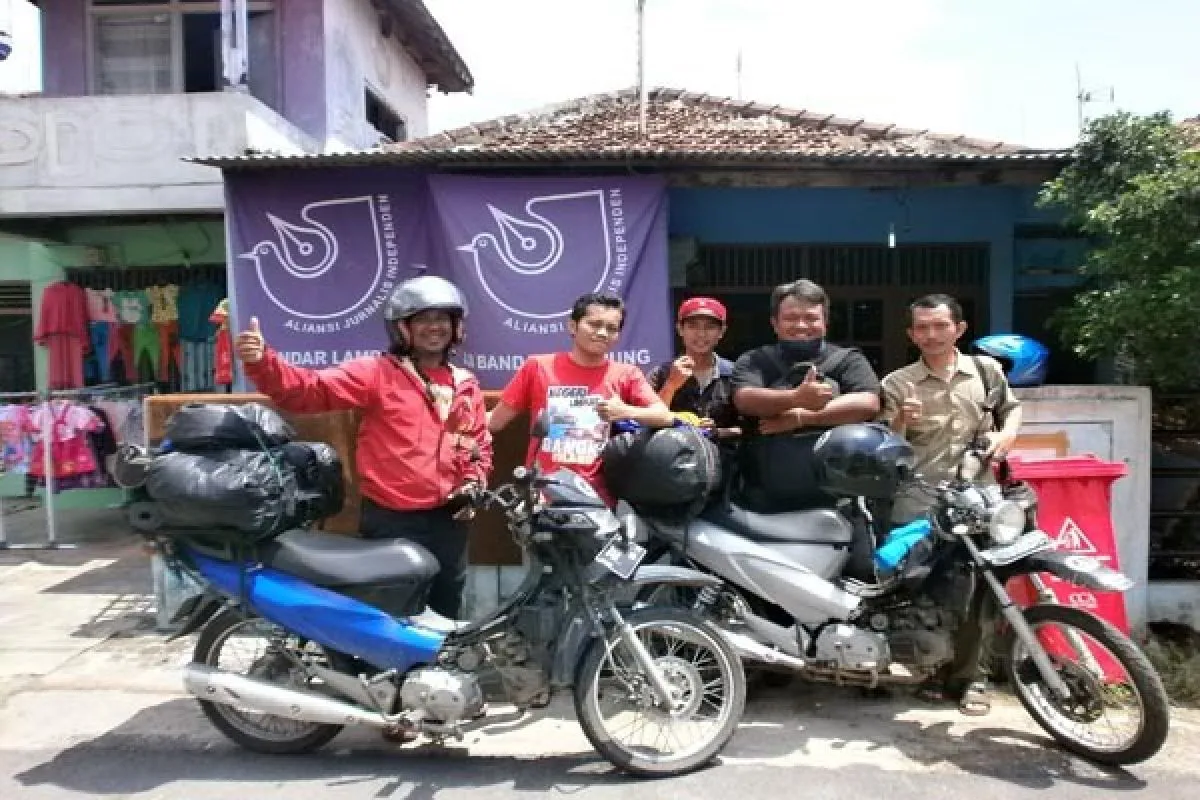 Ketua Aliansi Jurnalis Independen (AJI) Bandarlampung Yoso Muliawan, Pj Sekretarisnya Wandy Barboy dan pengurus Tri Purna Jaya beserta Korwil AJI Sumatera ikut melepas Dandhy dan Ucok untuk melanjutkan perjalanan ekspedisi mereka.