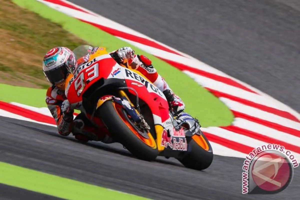 Roma (Antara/Reuters) - Marc Marquez mengamankan posisi terdepan pada lap terakhir untuk memenangi Grand Prix San Marino untuk Honda pada Minggu, dan selevel di puncak klasemen dengan pebalap Ducati Andrea Dovizioso.