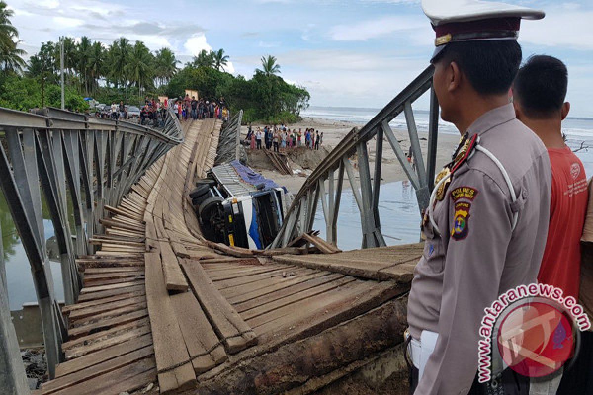 Bandarlampung (ANTARA LAMPUNG) - Jembatan darurat atau bailey di Jalan Lintas Barat (Jalinbar) Sumatera, Pekon Mandiri, Krui, Kabupaten Pesisir Barat, Lampung ambruk, Kamis.