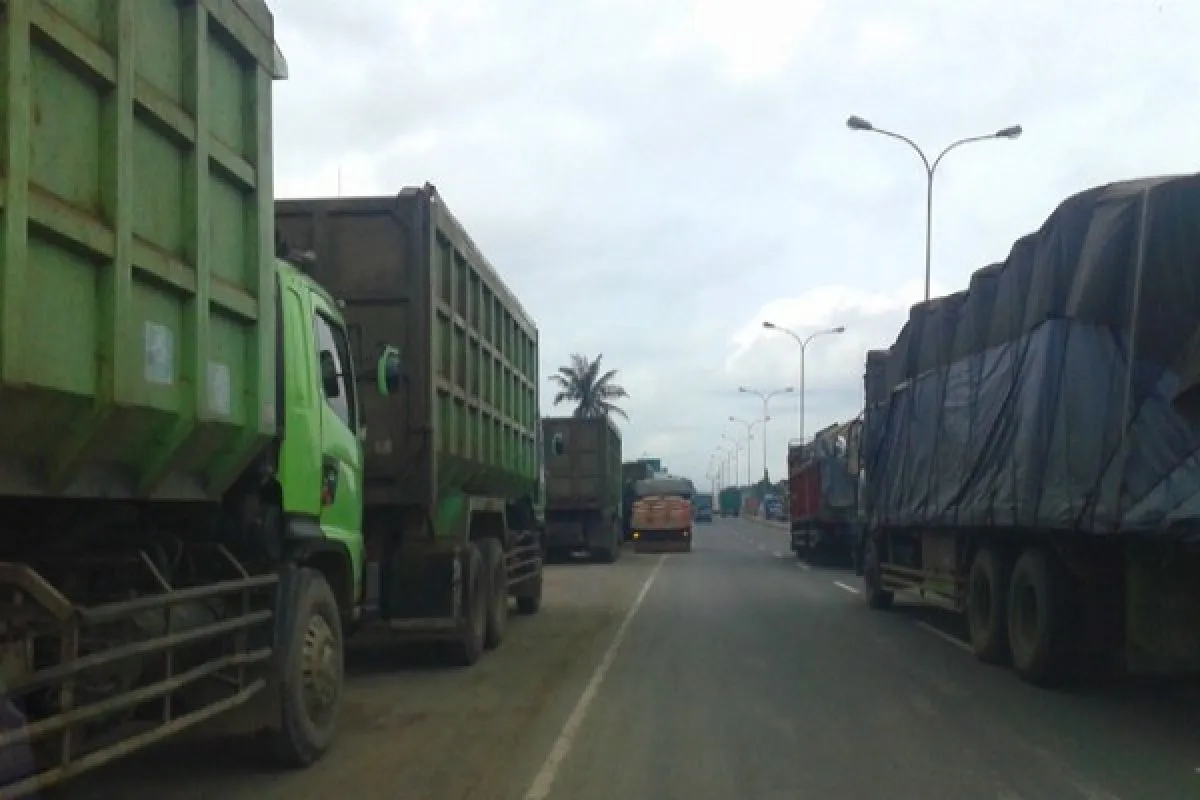 Truk dan tronton yang sarat muatan tetap bebas melintasi Jalinsum, sehingga mempercepat kerusakan jalan terutama pada musim hujan seperti sekarang ini.