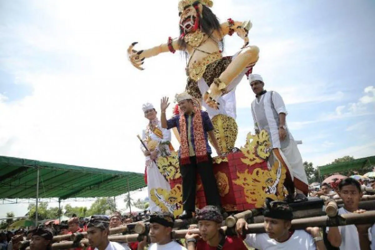 Sedikitnya 5.000-an masyarakat umat Hindu keturunan Bali di Provinsi Lampung menyambut Muhammad Ridho Ficardo (Gubernur Lampung nonaktif) yang memeriahkan Parade Ogoh-ogoh tersebut.