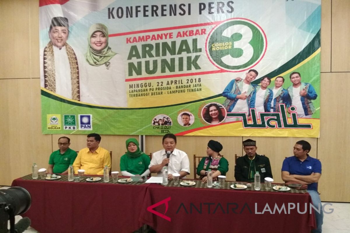 Lampung Tengah (Antaranews Lampung) - Pasangan calon gubernur dan wakil gubernur Lampung, Arinal Djunaidi-Chusnunia Chalim (Arinal-Nunik), mengajak seluruh masyarakat Lampung untuk berperan aktif membangun daerah setempat.