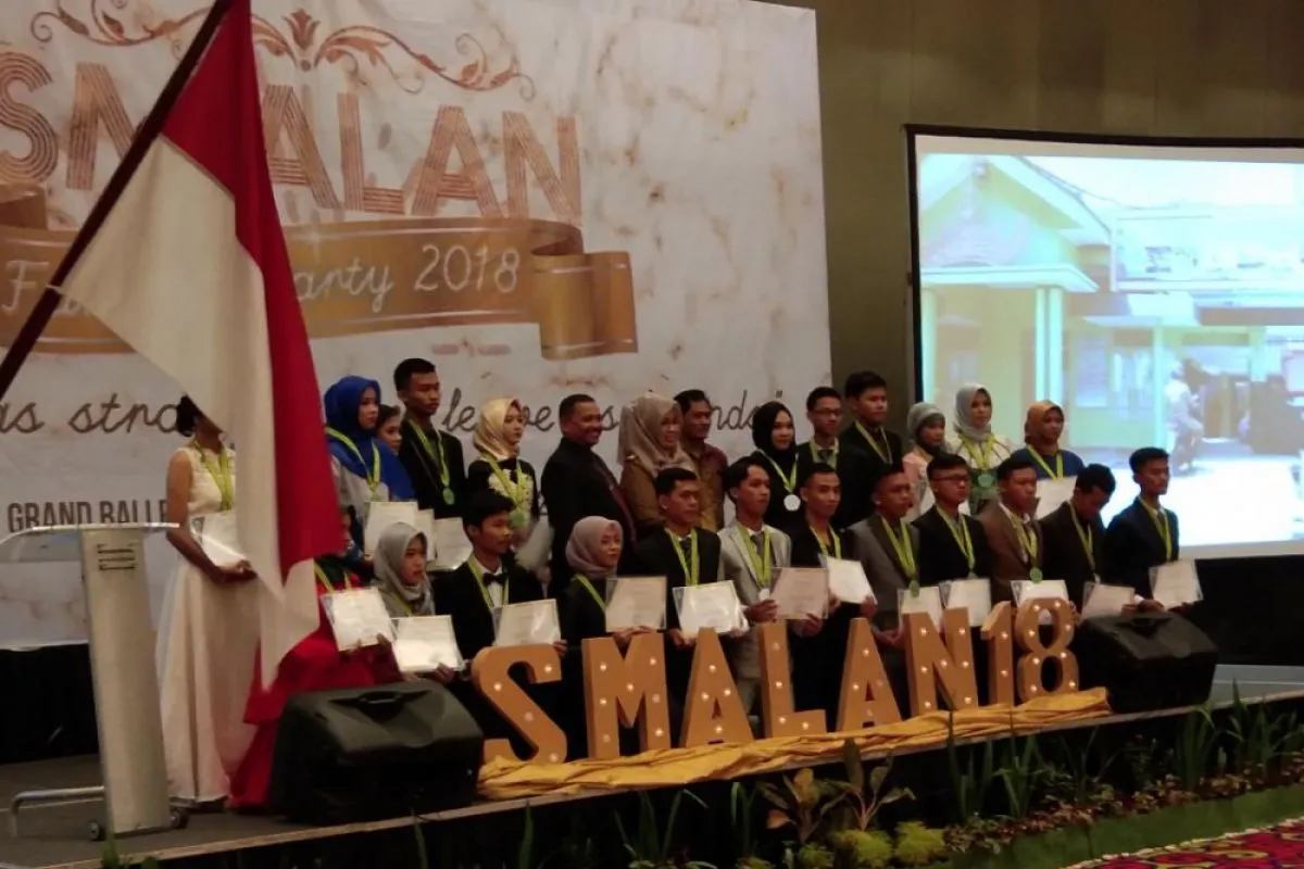 Para siswa berprestasi dari SMAN 9 Bandarlampung peraih berbagai penghargaan, saat acara perpisahan, di Bandarlampung, Selasa (24/4). (FOTO: ANTARA Lampung/Budisantoso Budiman)