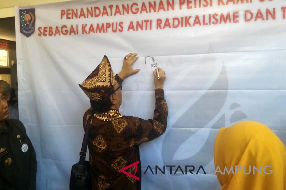Menurut dia, radikalisme dan terorisme dapat menyusup dari mana saja. "Untuk menangani radikalisme dan terorisme tentu perlu dilakukan deteksi dini. Alhamdulillah Provinsi Lampung telah memperoleh penghargaan tiga kali berturut dalam penanganan konflik terbaik di Indonesia," ujarnya