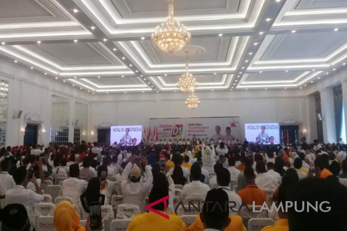 Jokowi menghadiri Rapat Kerja Daerah Tim Kampanye Daerah (TKD) Provinsi Lampung, di Graha Wangsa, Kota Bandarlampung, Sabtu.