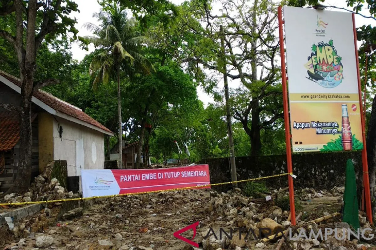 Kalianda, Lampung (Antaranews Lampung) - Sedikitnya tujuh objek wisata pantai di Desa Merak Belantung, Kecamatan Kalianda, Kabupaten Lampung Selatan ditutup sementara pascatsunami Selat Sunda yang melanda wilayah Lampung dan Banten.