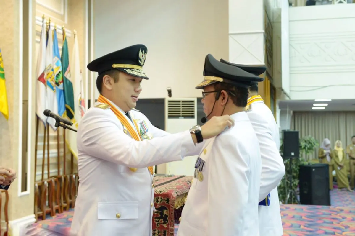 Gubernur Ridho menyampaikan ucapan selamat kepada Bupati dan Wakil Bupati Lampung Utara itu.