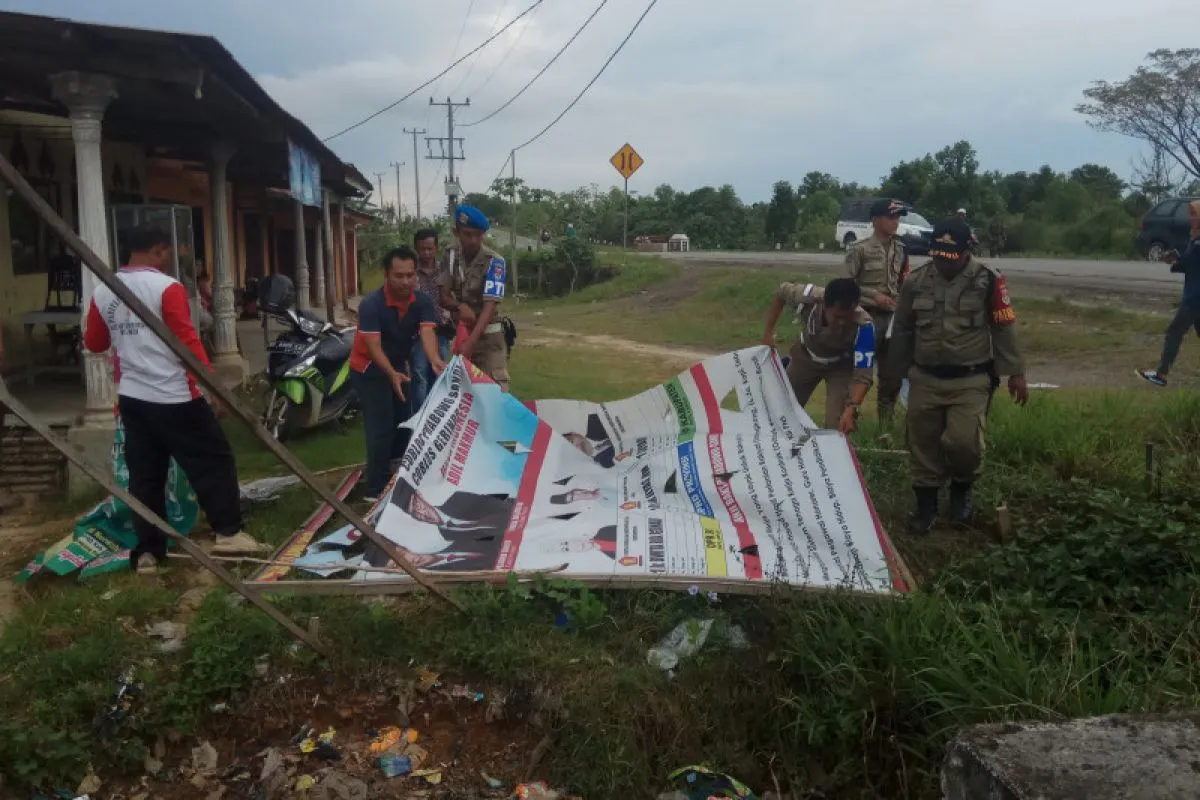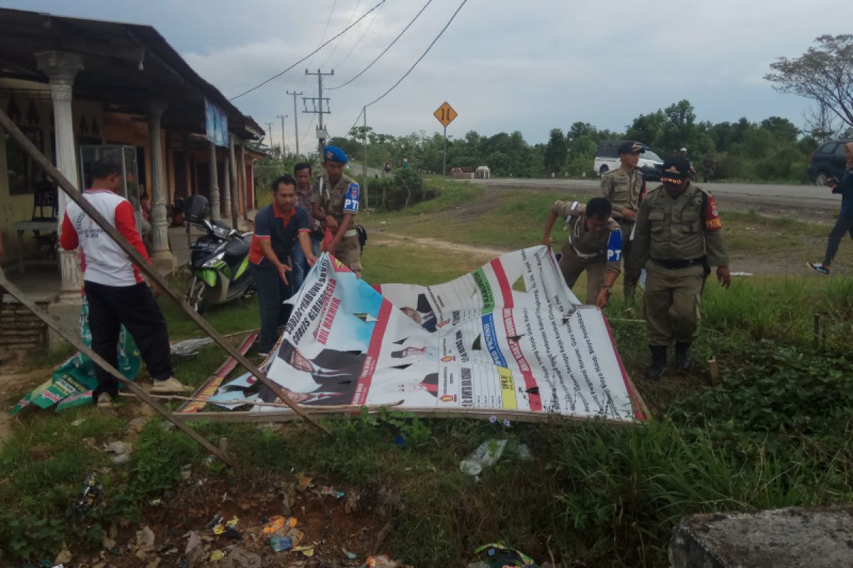 Mesuji (ANTARA) - Ribuan alat peraga kampanye peserta Pemilu 2019 di sejumlah wilayah di Kabupaten Mesuji Lampung sejak Minggu dini hari ditertibkan oleh petugas gabungan yang terdiri dari Badan Pengawas Pemilu, Satpol PP, Linmas, Polri, TNI, Kesbangpol dan lainnya.