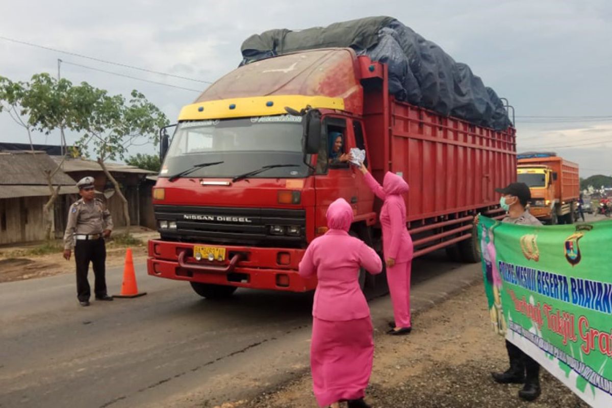 Mesuji, Lampung (ANTARA) - Polres Mesuji Lampung membagikan takjil kepada para pengendara saat melintas menuju Terbanggi Besar atau Tol Simpang Pematang.