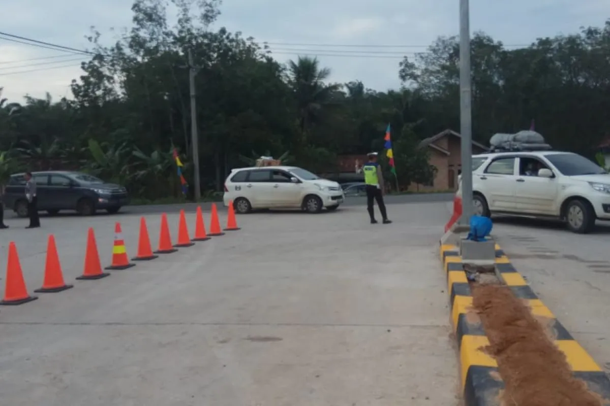 Terlihat juga beberapa personel kepolisian sedang mengatur ataupun bersiaga di pintu tol Simpang Pematang Mesuji, Lampung.