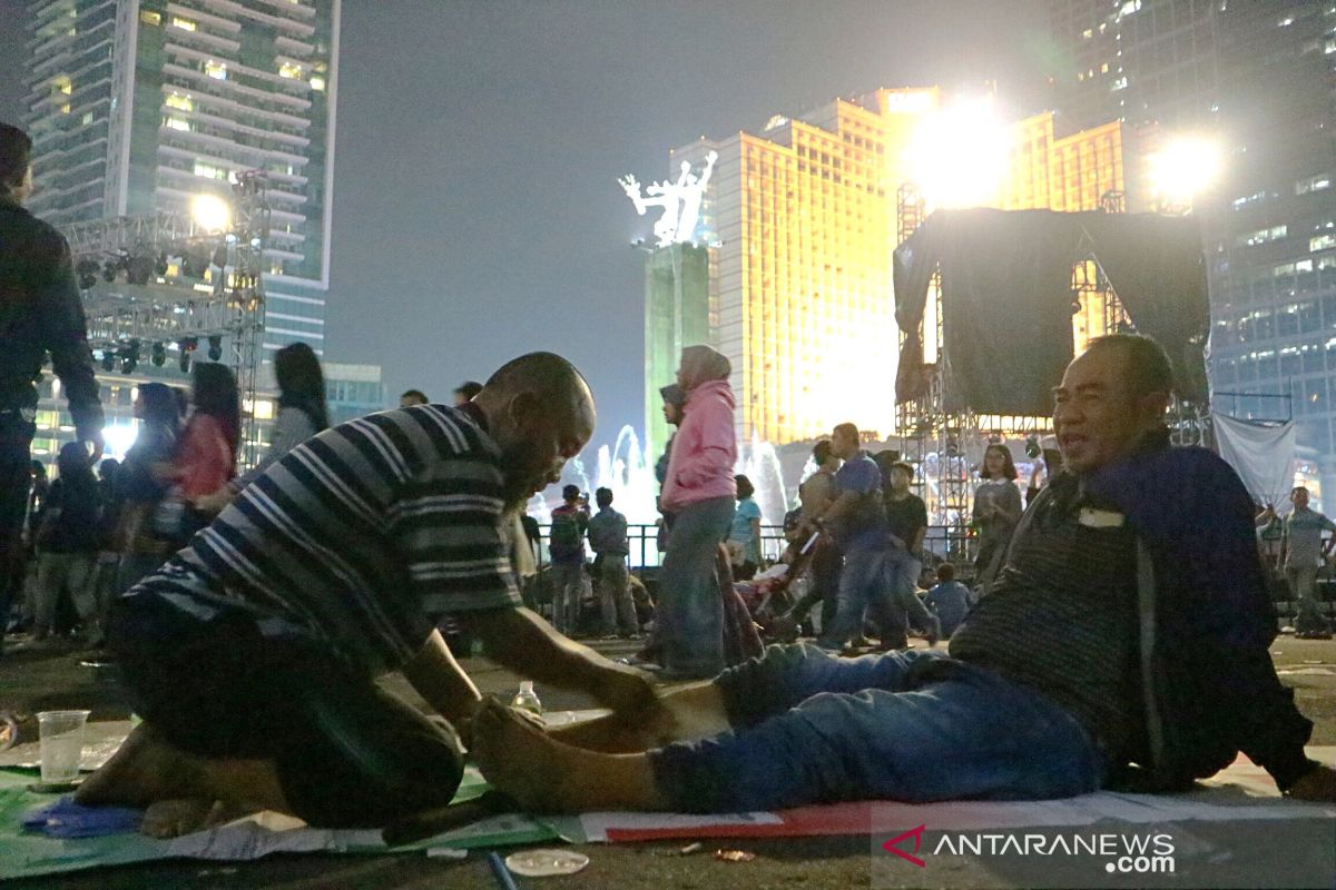 Tidak hanya pedagang, tukang pijat juga mendapat berkah dan meramaikan pada acara perayaan Hari Ulang Tahun (HUT) DKI Jakarta yang ke-492 di bundaran Hotel Indonesia (HI), Sabtu.