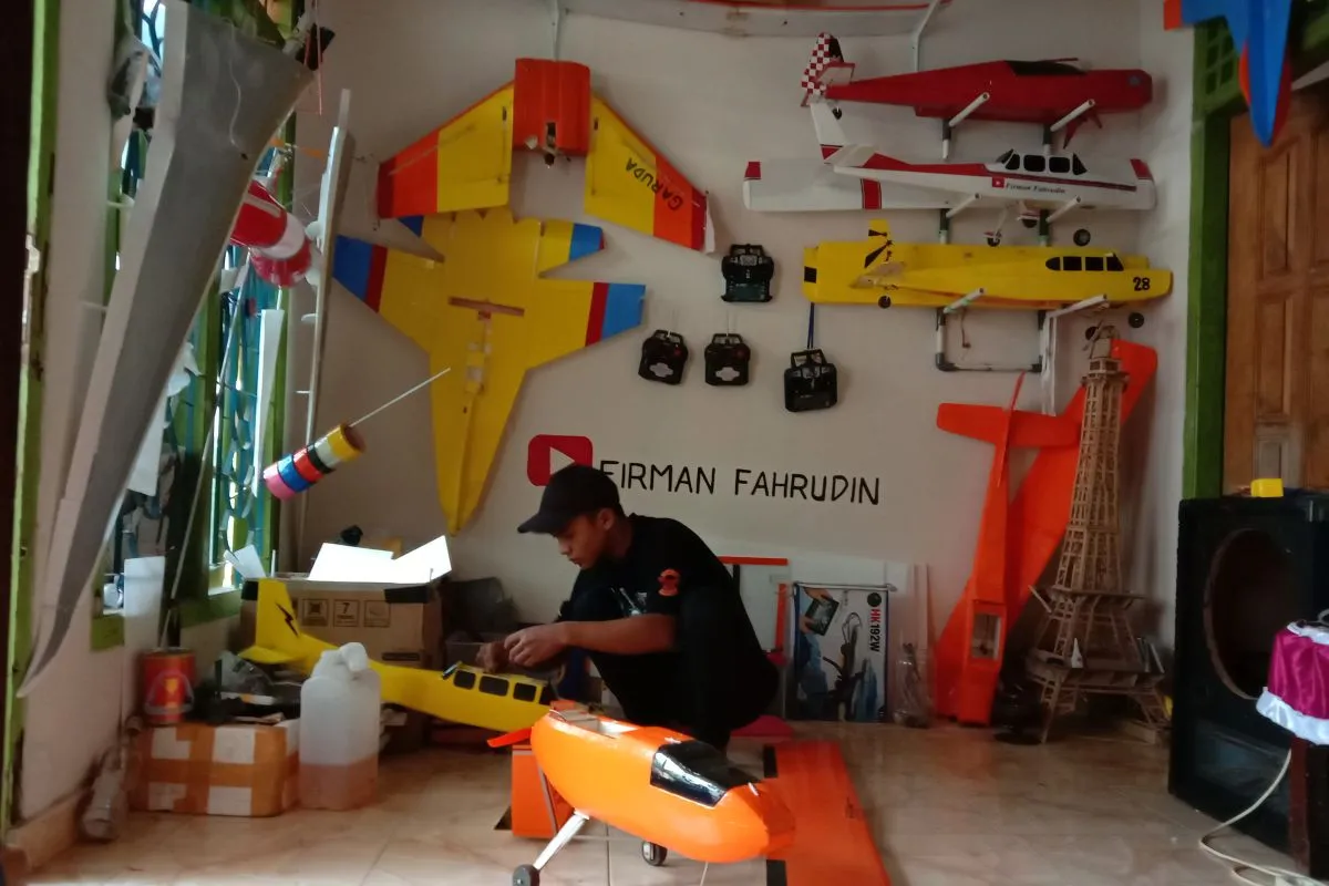 Firman saat dijumpai mengajak menyaksikan demo pesawat mainan buatannya di lapangan, dan menunjukkan dapat terbang secara sempurna.