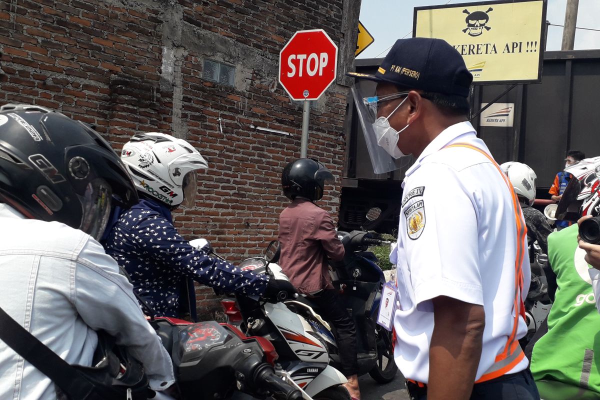 “Tengok kanan dan kiri untuk memastikan arah kereta yang akan melintas. Jika ada kereta yang akan melintas, maka pengendara wajib mendahulukan perjalanan kereta api,” jelasnya