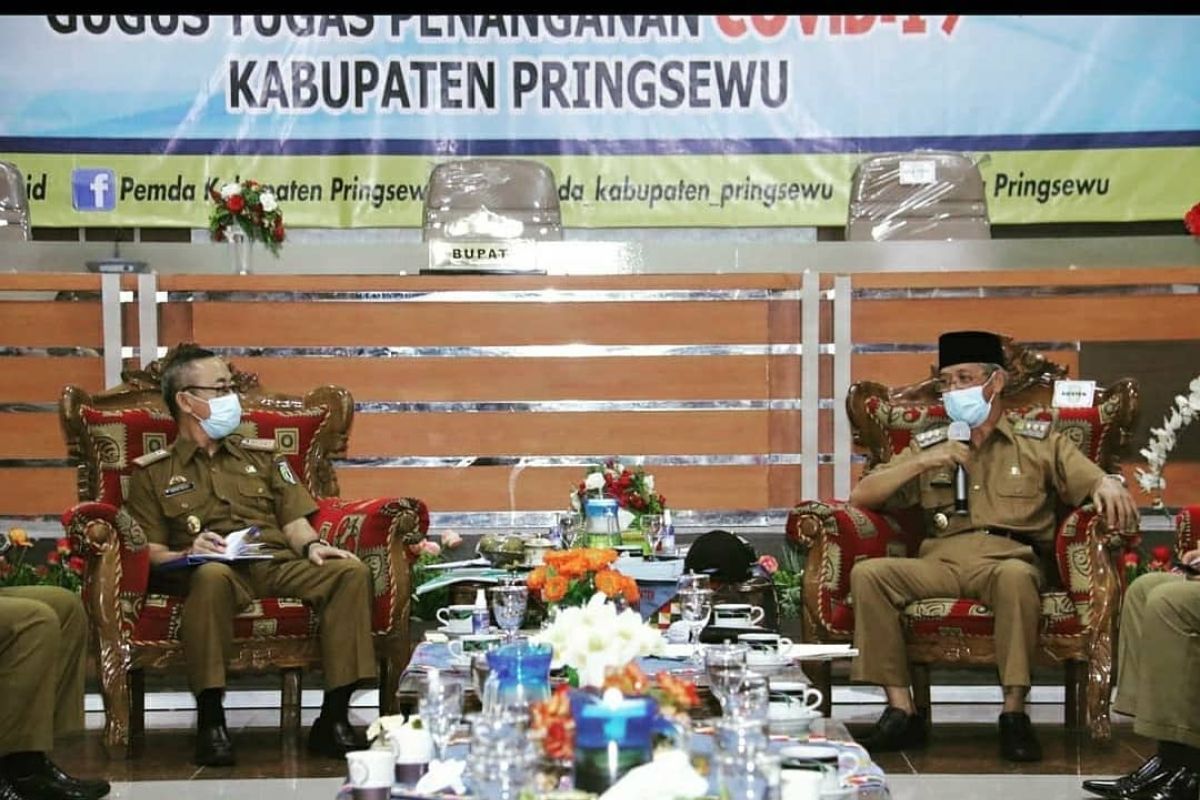 Lampung (ANTARA) - Pemerintah Kabupaten Pringsewu melaksanakan coffee morning sekaligus diskusi penegakan protokol kesehatan dan penyelenggaraan pemerintahan pada masa pandemi COVID-19, bertempat di Aula Utama Kantor Bupati setempat.