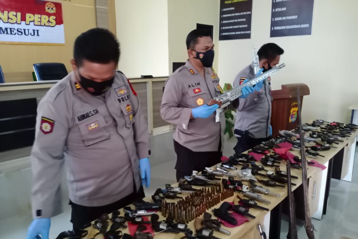 Polres Mesuji, Lampung telah menyita sebanyak 171 senjata api rakitan dan laras panjang selama tahun 2020.