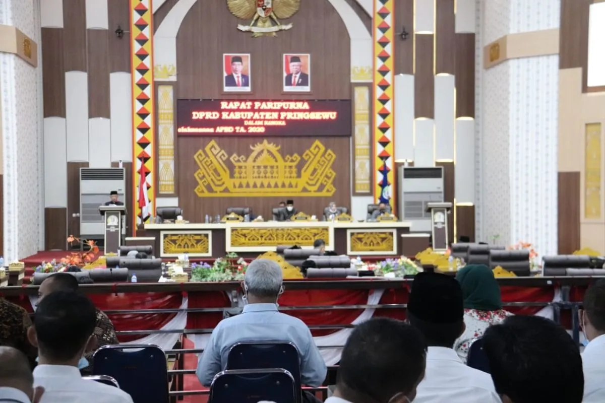 Rapat paripurna yang dipimpin Ketua DPRD Pringsewu Suherman, didampingi para Wakil Ketua DPRD ini, juga dihadiri Sekretaris Daerah Kabupaten Pringsewu Heri Iswahyudi, beserta jajaran Pemkab dan Forkopimda Pringsewu.