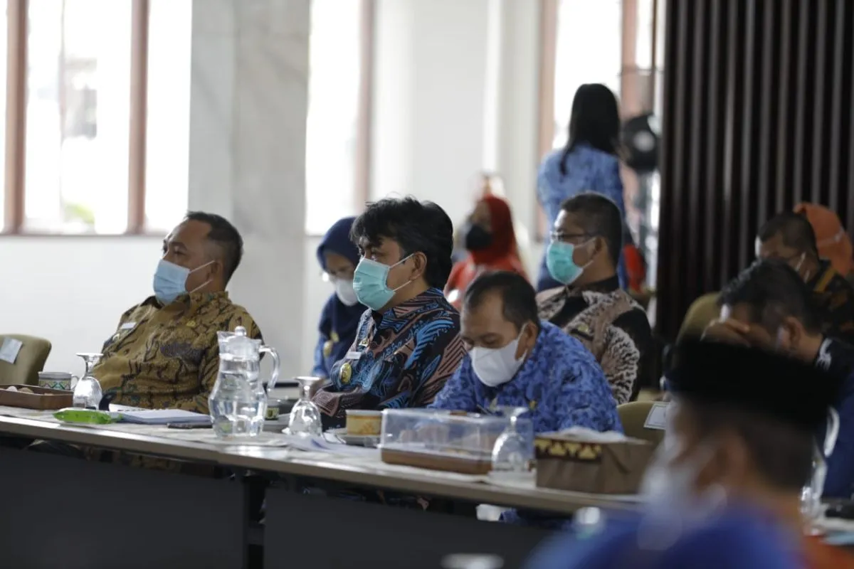 Bandarlampung (ANTARA) - Sekretaris Daerah Kabupaten Pringsewu Heri Iswahyudi, menghadiri Rapat Koordinasi Evaluasi Perkembangan Pelaksanaan Pemberlakuan Pembatasan Kegiatan Masyarakat (PPKM) Mikro di Mahan Agung (rumah jabatan Gubernur Lampung), Bandar Lampung, Kamis (17/6).
