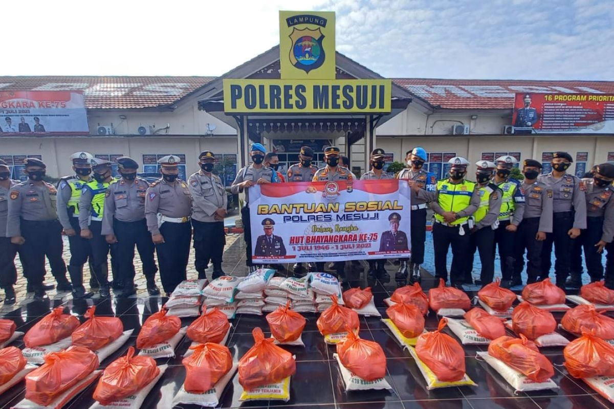 Mesuji (ANTARA) - Kepolres Mesuji Lampung AKBP Alim melepas kegiatan bakti sosial (baksos) dalam rangka Hari Bhayangkara ke-75 di Mapolres Mesuji, Lampung.