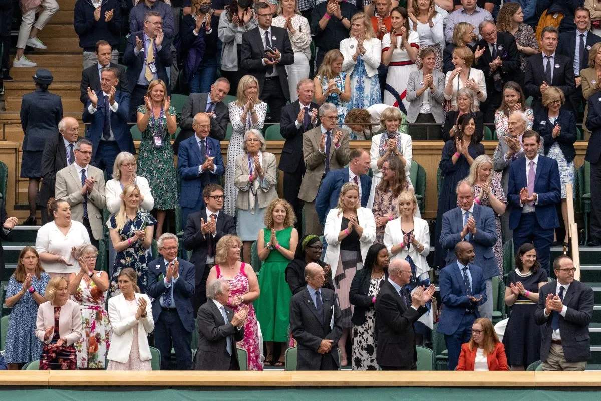 Turnamen Grand Slam lapangan rumput ini juga mengundang individu-individu yang memainkan peran besa dalam peran melawan virus corona untuk menyaksikan langsung Wimbledon dari tribun terhormat royal box.