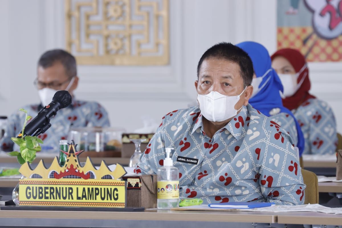 Bandarlampung (ANTARA) - Gubernur Lampung Arinal Djunaidi menghadiri Puncak Peringatan Hari Keluarga Nasional (Harganas) Ke-28 dan peluncuran vaksinasi COVID-19 bagi ibu hamil, ibu menyusui, dan anak usia 12-18 tahun secara virtual, bertempat di Mahan Agung, Bandarlampung, Selasa.
