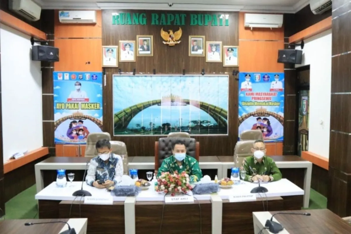 Bandarlampung (ANTARA) - Staf Ahli Bupati Bidang Ekonomi Pembangunan dan Keuangan Kabupaten Pringsewu Samsir Kasim, didampingi oleh Kadis Kominfo Hendrid, dan Plt. Kadis PM-PTSP Hasan Basri, mengikuti peresmian peluncuran sistem Online Singel Submission (OSS) berbasis risiko melalui Video Conference, bertempat di Ruang Rapat Bupati Pringsewu beberapa waktu lalu.