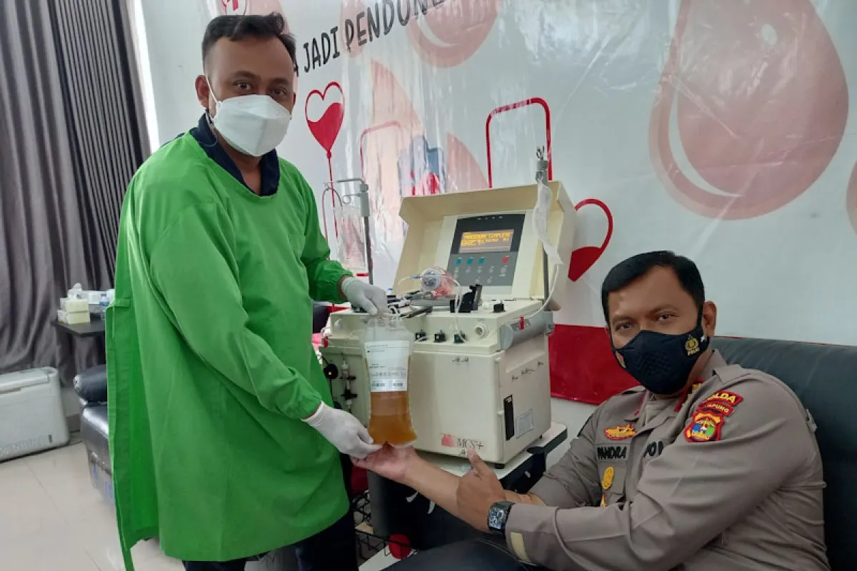 Bandarlampung (ANTARA) - Kabid Humas Polda Lampung, Kombes Pol Zahwani Pandra Arsyad, mendonorkan plasma konvalesen di UTD Palang Merah Indonesia (PMI) Provinsi Lampung.