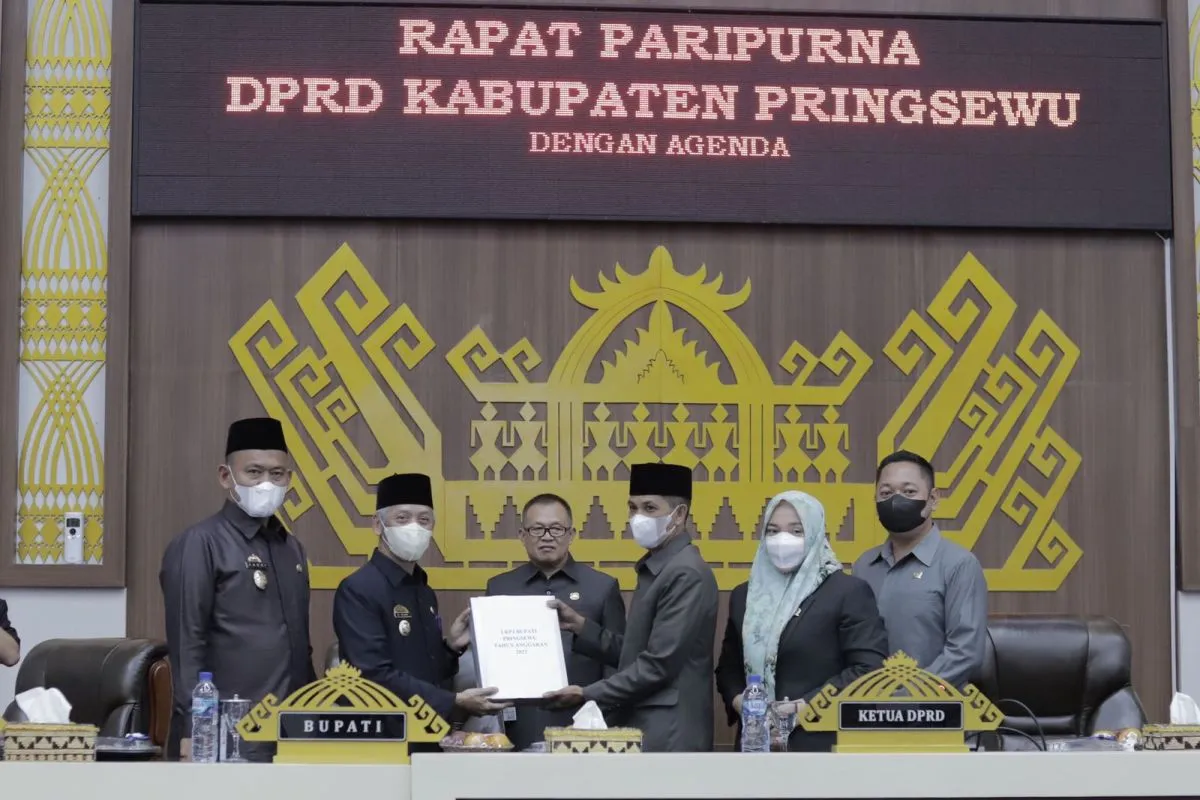 Rapat paripurna dipimpin Ketua DPRD Pringsewu Suherman, dihadiri Wakil Bupati Pringsewu Fauzi dan Sekretaris Daerah Heri Iswahyudi beserta jajaran pemerintah daerah dan forkopimda.