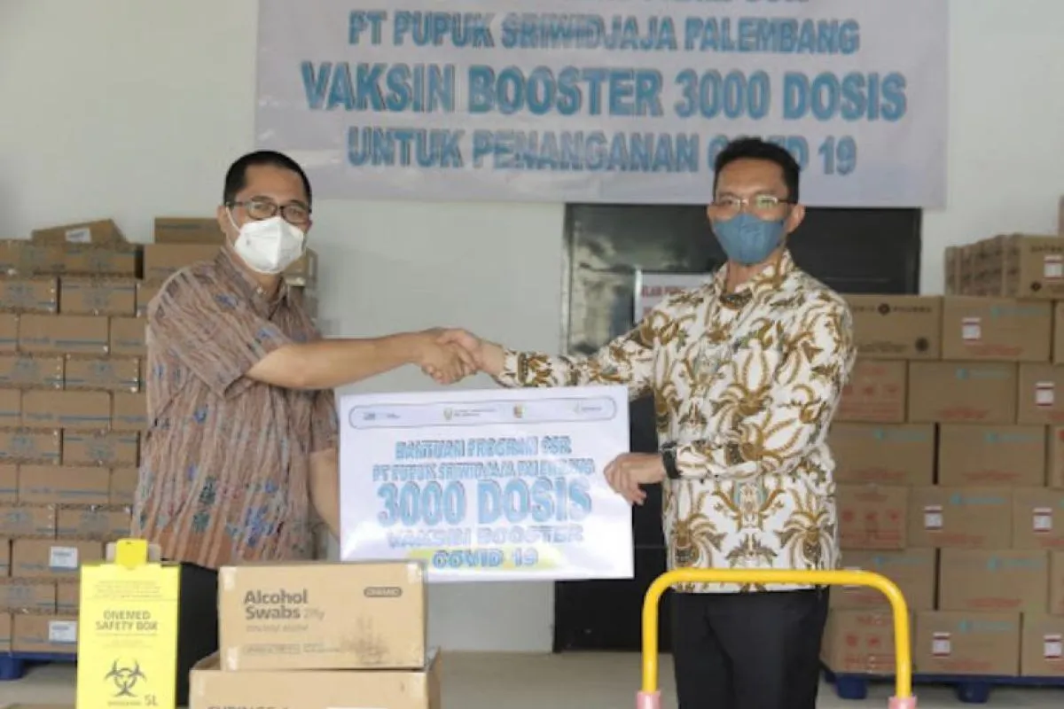 Bandarlampung (ANTARA) - Guna mendukung pemerintah dalam percepatan penanganan COVID-19 yang saat ini masih ada di Indonesia, PT Pusri Palembang yang merupakan anak perusahaan PT Pupuk Indonesia (Persero) laksanakan penyerahan 3.000 vaksin booster untuk masyarakat di Provinsi Lampung khususnya masyarakat di Kabupaten Pesawaran, Jumat.