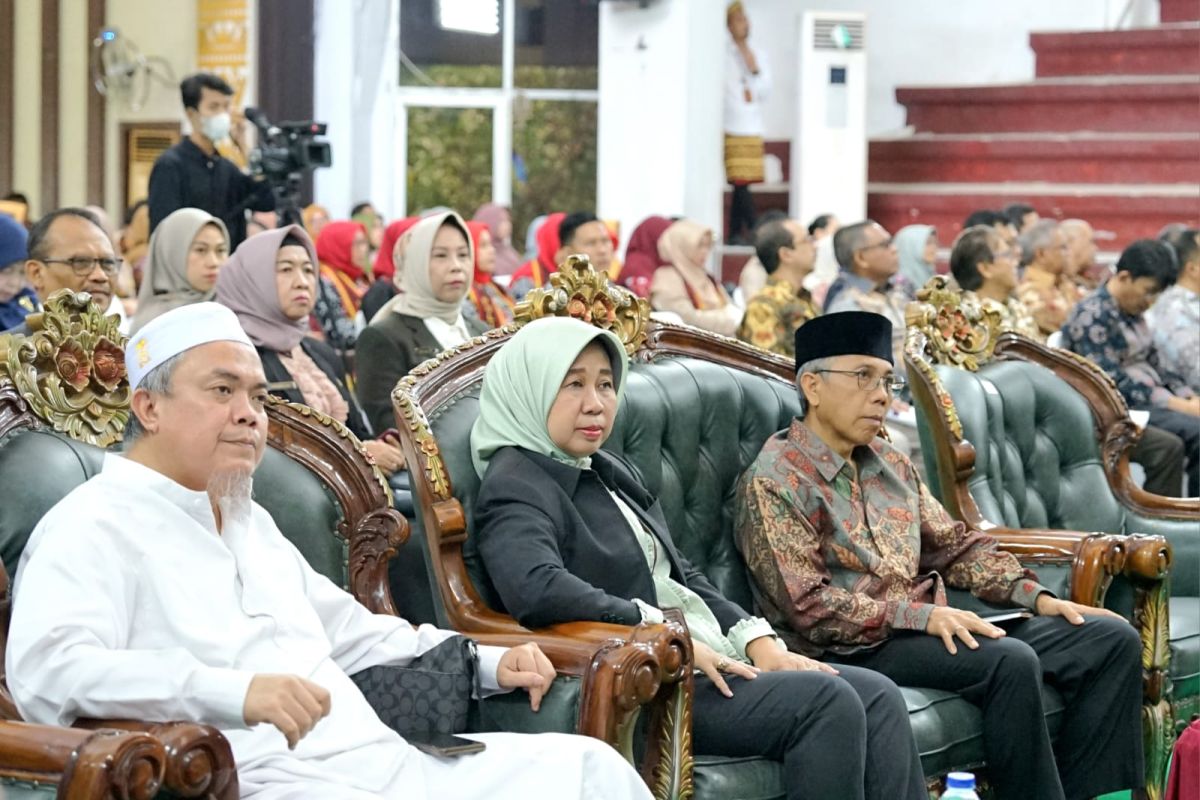 Bandarlampung (ANTARA) - Rektor Universitas Lampung (Unila) Prof. Lusmeilia Afriani, menghadiri pengukuhan guru besar pertama Politeknik Negeri Lampung (Polinela) Prof. Sarono, di aula gedung serbaguna kampus setempat, Kamis, (13/7/23).