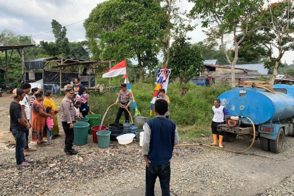 Lampung Barat (ANTARA) - Polres Lampung Barat, Polda Lampung menyalurkan bantuan sosial berupa air bersih sebanyak 12.000 liter kepada masyarakat di Lingkungan Sukajadi, Kelurahan Way Mengaku, Kecamatan Balik Bukit, Kabupaten Lampung Barat saat ini mulai dilanda kesulitan air bersih.