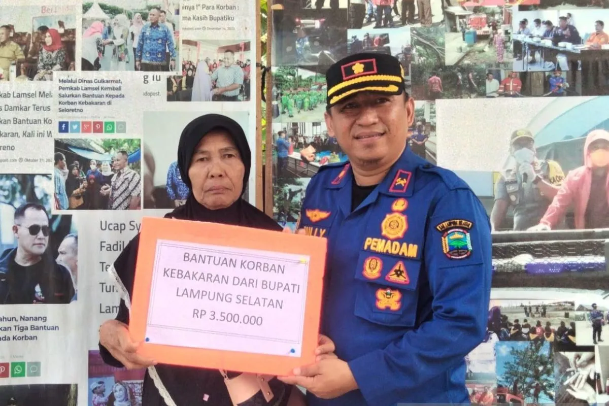 Lampung Selatan (ANTARA) - Pemerintah Kabupaten Lampung Selatan melalui Dinas Pemadam Kebakaran dan Penyelamatan (Damkarmat) setempat menyalurkan bantuan sosial berupa uang kepada para korban kebakaran rumah warga.