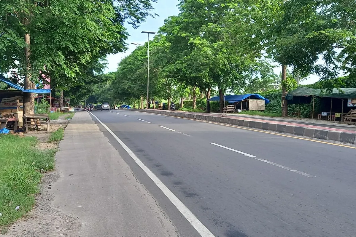 Berdasarkan pantauan di sejumlah ruas jalan nasional itu, Rabu pagi menunjukkan terlihat sepi kendaraan yang melintas terutama mobil.