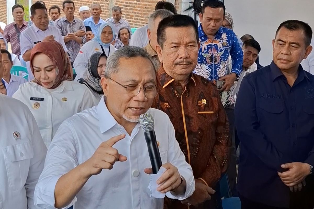 Menteri Koordinator (Menko) Bidang Pangan Zulkifli Hasan saat memberi keterangan terkait koperasi merah putih di Lampung Selatan. ANTARA/Ruth Intan Sozometa Kanafi.