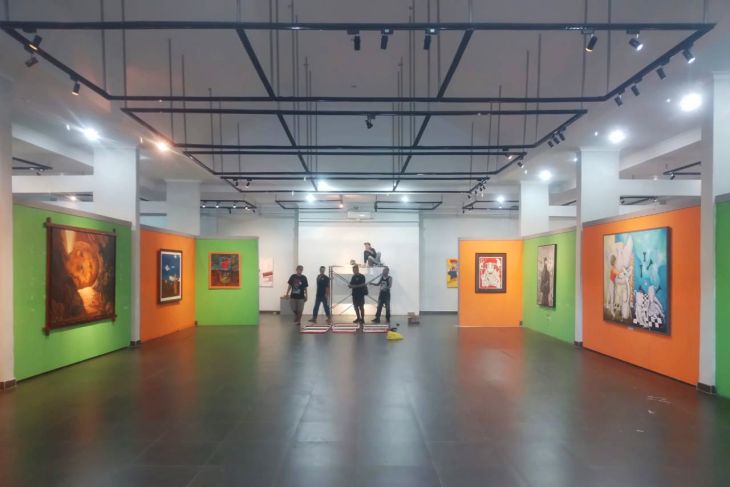 Presentasi karya yang ditata sedemikian rupa untuk memanjakan mata dan ruang-ruang imajinasi para apresiator, terlihat dari para perupa yang sedang mendisplay presentasi karya dalam ruang-ruang apresiasi Gedung Pameran Taman Budaya Lampung di Bandarlampung.