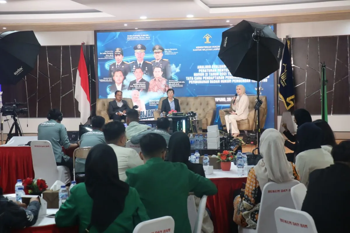 Hal itu disampaikan Plt. Kepala Kantor Wiayah Kementerian Hukum, Benny Daryono pada acaraDesiminasi Hasil Analisis Strategi Kebijakan di Wilayah dengan topik “Analisis Evaluasi Peraturan Menteri Hukum dan Hak Asasi Manusia Nomor 21 Tahun 2021 tentang Syarat dan Tata Cara Pendaftaran, Pendirian, Perubahan, dan Pembubaran Badan Hukum Perseroan Terbatas”, di di Aula Kanwil Kemenkum Lampung, Kamis.