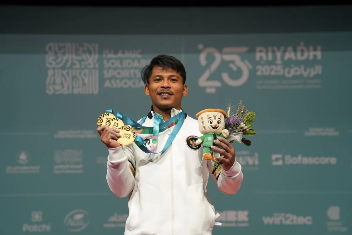 Jakarta (ANTARA) - Atlet angkat besi Muhammad Husni mempersembahkan tiga medali emas dari kelas 60 kg putra pada Islamic Solidarity Games (ISG) Riyadh 2025, Arab Saudi.
