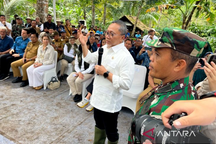 "Jadi hari ini kita penanaman pohon dan pemberian bibit (kopi-kakao) kepada Kelompok Usaha Perhutanan Sosial," kata Zulhas saat berdialog dengan Kelompok Usaha Perhutanan Sosial (KUPS) di Desa Way Kalam, Kecamatan Penengahan, Kabupaten Lampung Selatan, Selasa.