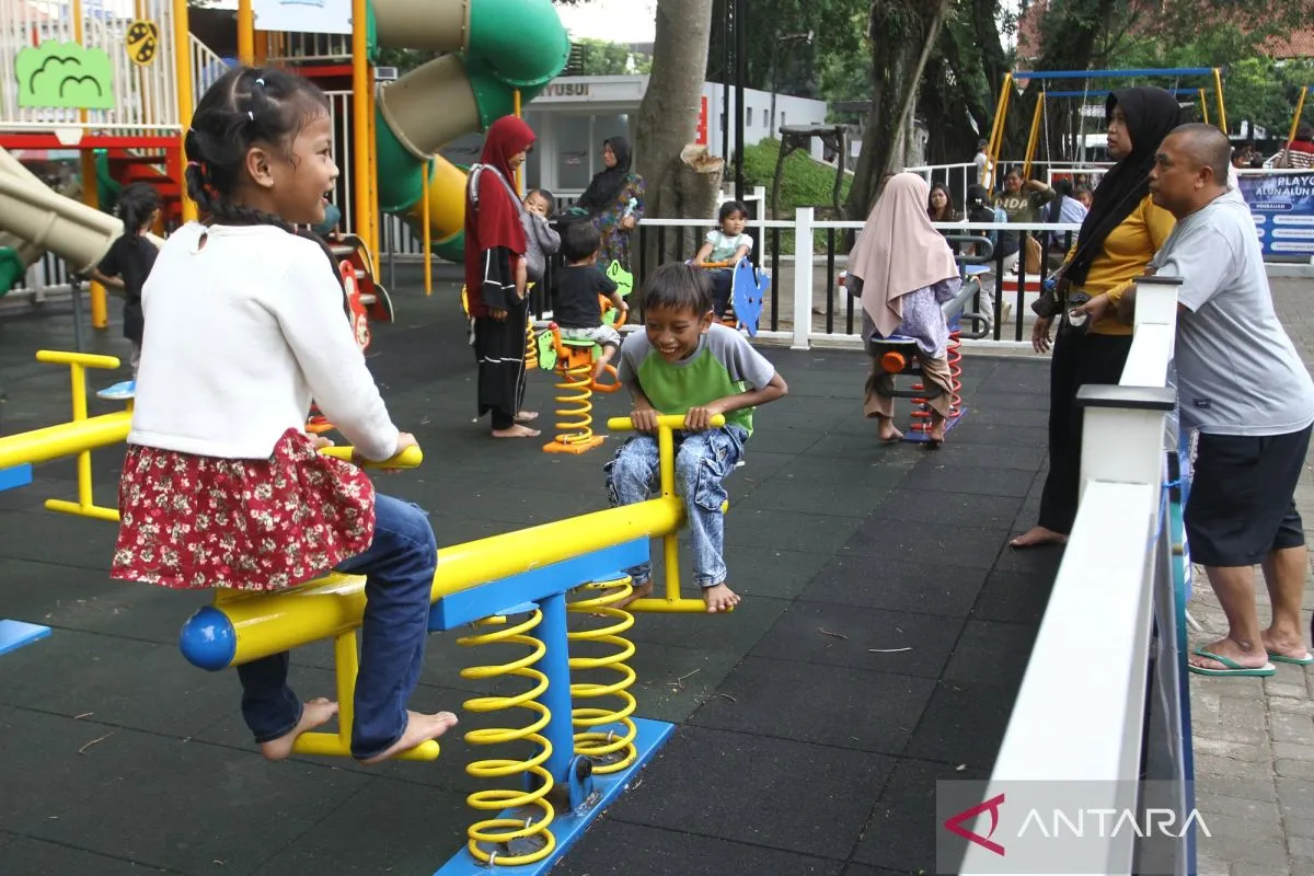 Arsip Foto - Orang tua menemani anak bermain saat menunggu waktu berbuka puasa di Alun-Alun Merdeka Kota Malang, Jawa Timur, Kamis (19/2/2026). (ANTARA FOTO/Ari Bowo Sucipto/wsj)