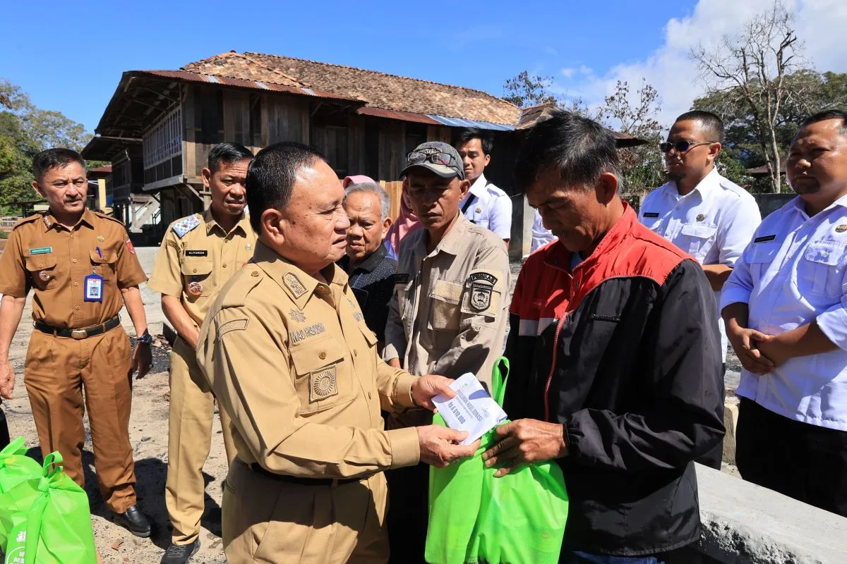 Lampung Barat (ANTARA) - Wakil Bupati Lampung Barat (Lambar) Mad Hasnurin menyerahkan bantuan kepada dua warga yang menjadi korban kebakaran rumah di Pekon (Desa) Kenali, Kecamatan Belalau, sebagai bentuk kepedulian pemerintah kepada warganya.