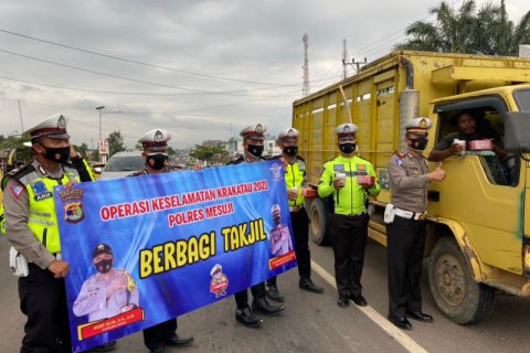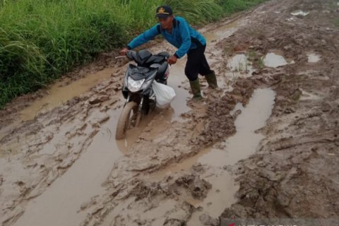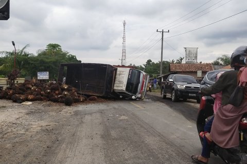 Truk sawit terbalik di tengah Jalan Lintas Sumatera wilayah Mesuji