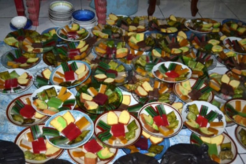 Aneka kue basah yang dibuat secara tradisional khas kampung siap dihidangkan. Aneka kue itu menjadi menu utama warga desa untuk hidangan di berbagai acara keluarga seperti selamatan, pesta, atau buka puasa bersama. (FOTO ANTARA M.Tohamaksun).