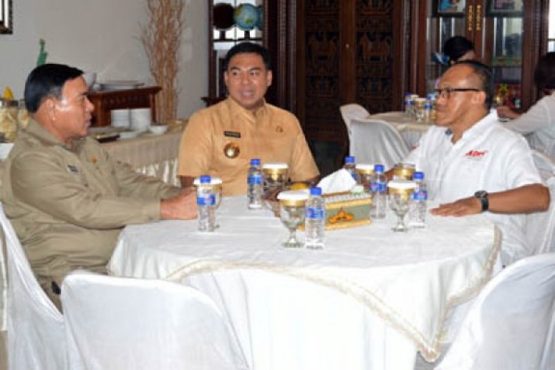 Ketua Umum Partai Golkar Aburizal Bakrie (ARB) sedang berbincang-bincang dengan Gubernur Lampung Sjachroedin ZP dan Bupati Lampung Selatan Rycko Menoza SZP di Rumah Dinas Bupati Lampung Selatan, Kalianda, Selasa (28/1). (Foto Antara/Kristian Ali)