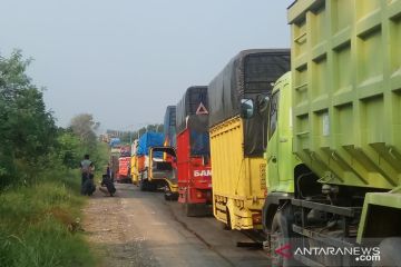 Kemacetan panjang tetap terjadi di Jalan Lintas Timur Mesuji sehingga rawan menjadi tindak kejahatan seperti pungutan liar. Jembatan Mesuji di Km 200 Lintas Timur ambrol pada Senin (17/6) lalu. (Antaralampung.com/Raharja)