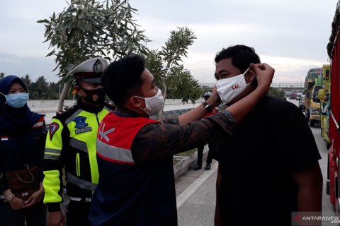 HK ruas Bakter Bagikan Masker kepasa Pengguna Toll