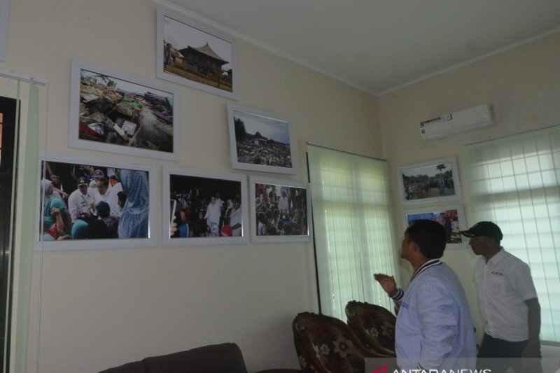 Pewarta Kantor Berita Antara Biro Lampung Agus Wira Sukarta (kanan) bersama Regional Corporate Comunication Wast Region PT XL Axiata Tbk Aldi Desmet (kiri) melihat galeri Antara Foto Lampung saat melakukan kunjungan di Kantor Berita Biro Antara Lampung, Rabu (15/1/2020).