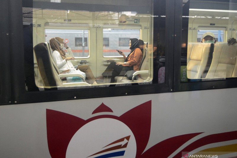 Penumpang menaiki Kereta Api Kuala Stabas Jurusan Lampung- Baturaja di Stasiun Kareta Api Divre IV Tanjung Karang, Bandar Lampung, Lampung, Senin (1/9/2020). PT KAI Divre IV Tanjung Karang Lampung kembali membuka perjalanan kereta api rute Lampung- Baturaja Sumatera Selatan, dengan memberlakukan protokol COVID-19 diantaranya penumpang wajib menggunakan masker dan menjaga jarak. Antaranews Lampung/Ardiansyah